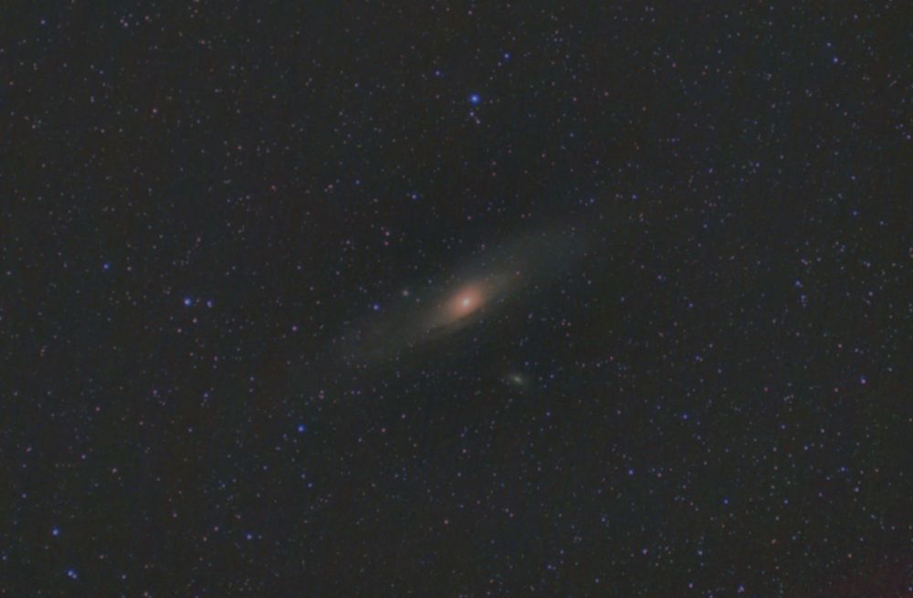 M31, 282 frames at 2.5 seconds each, taken with a Canon 350D and Jupiter 37A on a photo tripod. Processed with DSS and PS CS 6.
