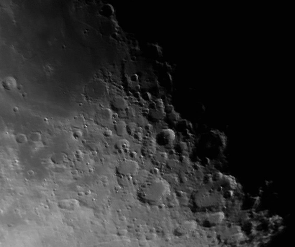 View of the terminator in the southern part of the Moon (Phase = -50%): the largest craters from top to bottom: Dellandre-Tycho-Maginus-Clavius.