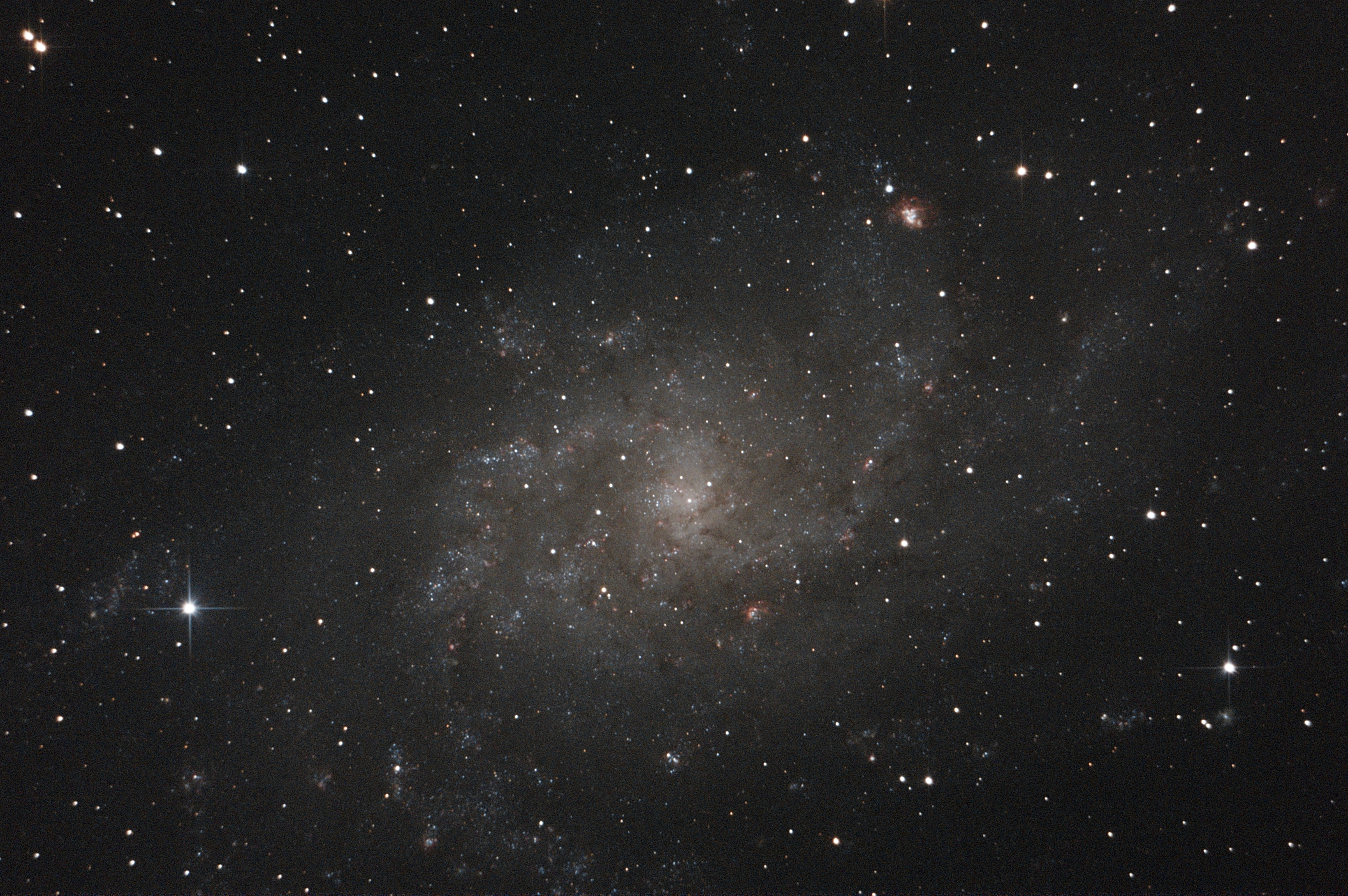 Galaxy M33 in Triangulum, captured with an L-Pro filter during a moon phase of ~50%.
