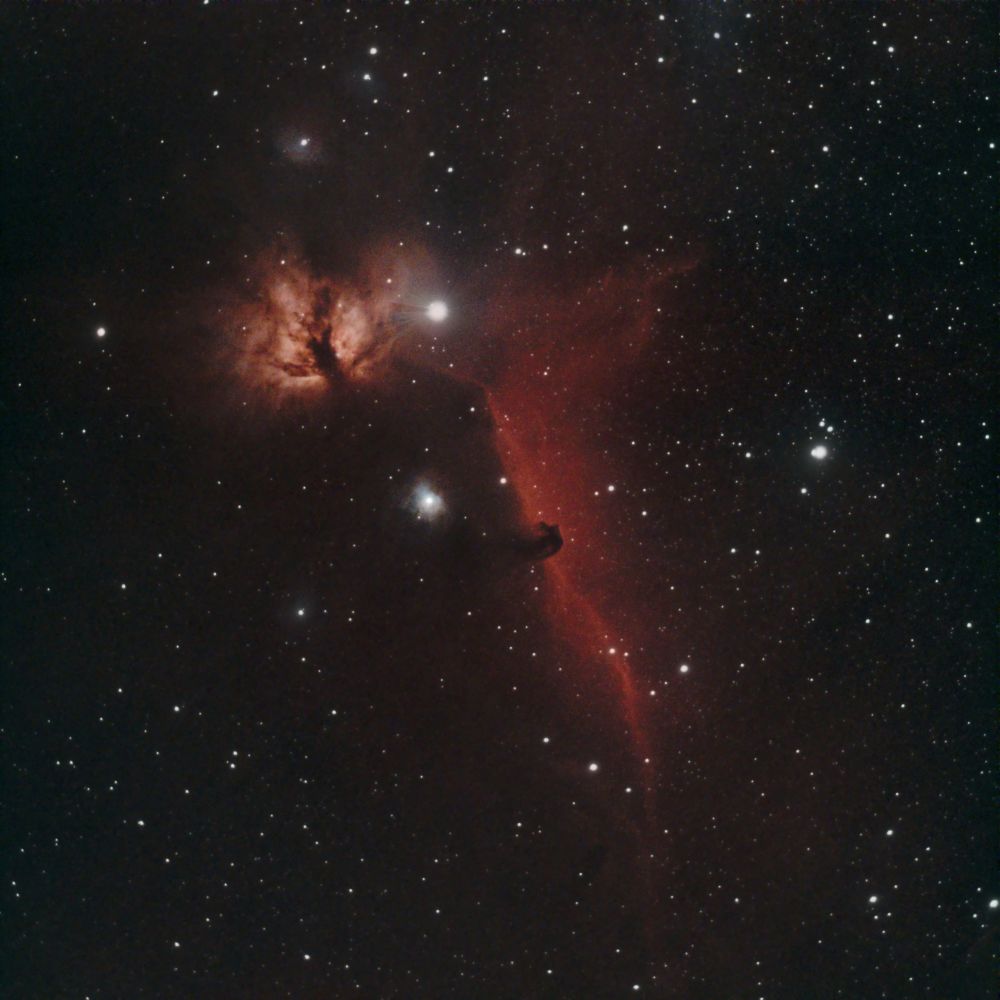 Horsehead Nebula (IC 434, Barnard 33) in Orion and the Flame Nebula NGC 2024