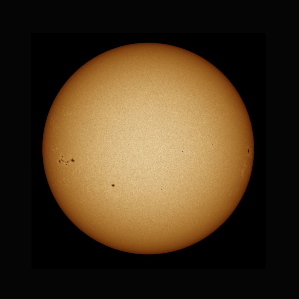 Sun 07.07.2024: Telescope SV503 80ED F7 (D-80mm, f-560mm). Solar aperture filter. Camera ZWO ASI 290mm; Mount EQ-5 OnStep. Exposure - 0.3 ms, Gain - 0 (0%). Mosaic of two images. Each image stacked from 500 frames out of 5000. Processed in AS, AI 3.0SI, Ps.