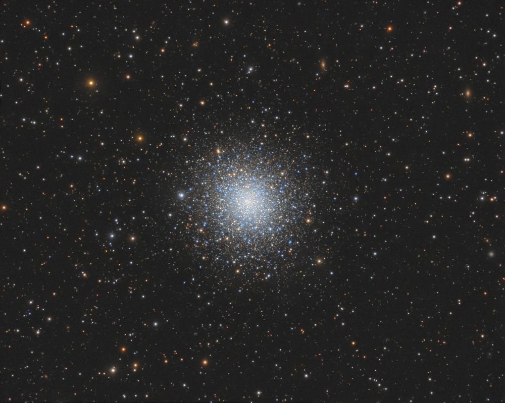Messier 92 (also known M 92, or NGC 6341) is a globular cluster of stars in the northern constellation of Hercules. It was discovered by Johann Elert Bode in 1777, then published in the Jahrbuch during 1779. It was inadvertently rediscovered by Charles Messier in 1781 and added as the 92nd entry in his catalogue. It is about 26,700 light-years away from the Solar System. It is one of the brighter of its sort in apparent magnitude in the northern hemisphere and in its absolute magnitude in the galaxy, but it is often overlooked by amateur astronomers due to angular proximity to bright cluster Messier 13, about 20% closer. It is visible to the naked eye under very good conditions.
