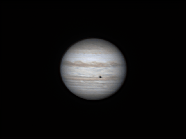 First attempt at capturing a timelapse of Jupiter's rotation over 30 minutes. The moon Io and its shadow on the planet's surface, 10.09.2022. The Great Red Spot appears on the left. A bit rough, but a start! 6 frames)