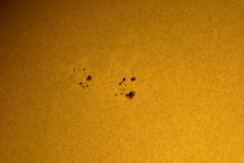 The Sun. Sunspot group: 2940 Date: 03.02.22 Time: UT +3; 12:03 Location: Mikhaylovsk city, 5th-floor balcony; Apparent diameter: 0°32' 27.25" Magnitude: -26.77 Sun's altitude above the horizon: 28° Azimuth: 174° Distance from Earth to the Sun: 0.986 AU (147.448 million km)