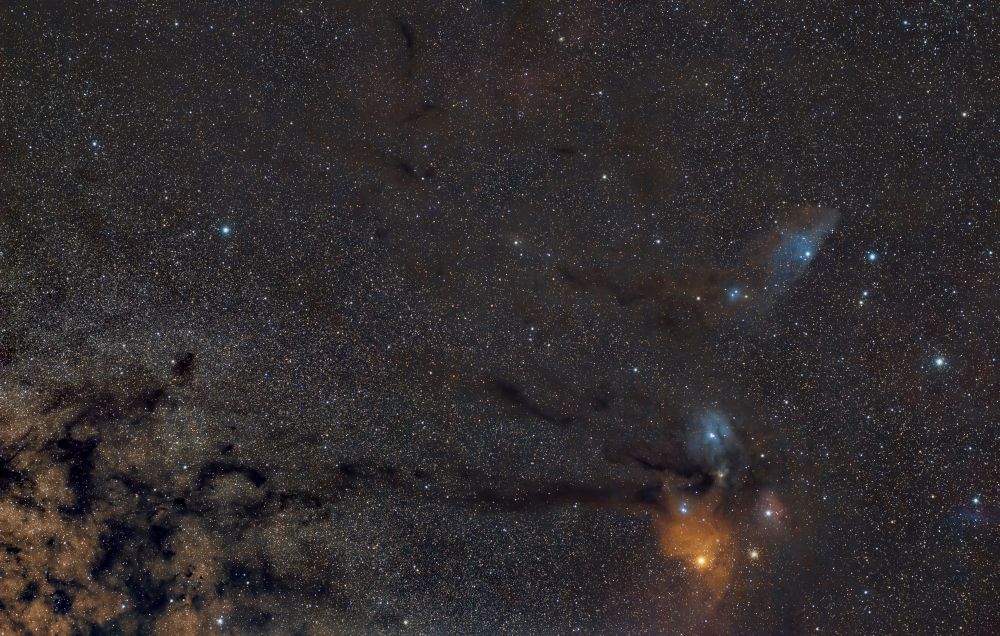 RHO OPHIUCHI MOLECULAR CLOUD AND THE DARK HORSE NEBULA Telescope/Lens: Canon 50 1.8 Camera: Canon 700D Mount: Ioptron SkyTracker Pro Software: Siril, Pixinsight, Lightroom, Photoshop, Topaz Denoise Vetka , Russia Light Pollution: Blue zone Exposure: 32 x 90" ISO/Gain: 1600 Original size: https://deepskyhosting.com/VWkfi8F Author: LittleRomka