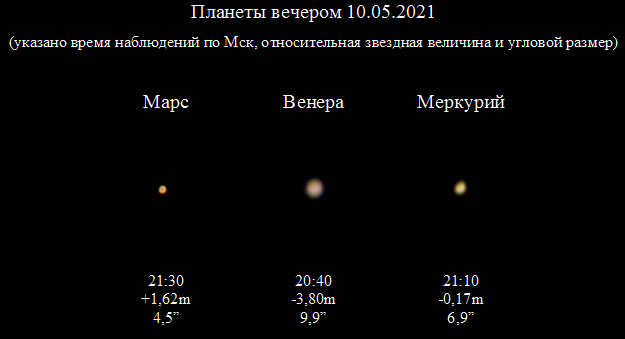 An attempt to photograph planets right after sunset on 10.05.21 through a 100 mm Maksutov-Cassegrain telescope.