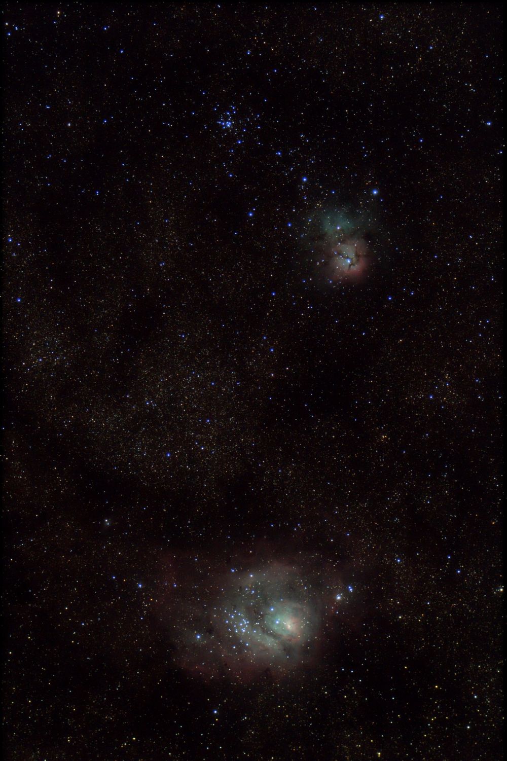 M8, M20. Camera: Canon 550D Mount: Sky-Watcher NEQ5 Original size: https://deepskyhosting.com/VhouXFc Author: StarHunter