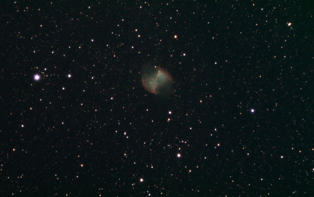 Distance from Earth: 1,250 light-years. Age of the object: 3,000 to 4,000 years. This object was the first planetary nebula discovered by Charles Messier (in 1764).