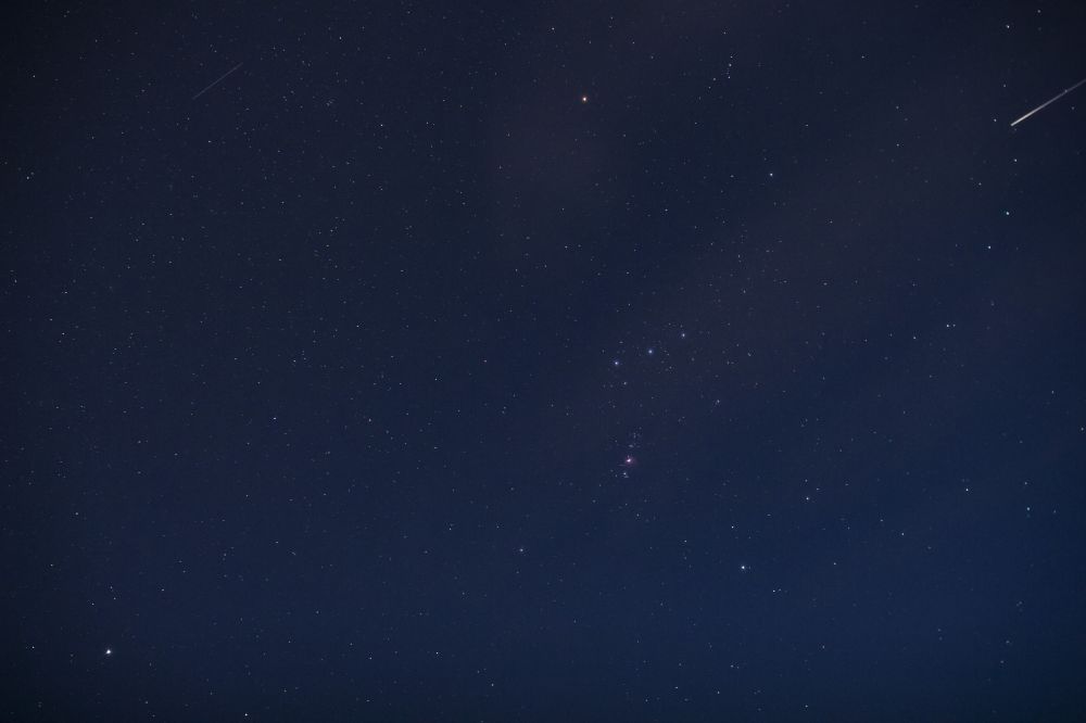 Orion with a meteor and a satellite