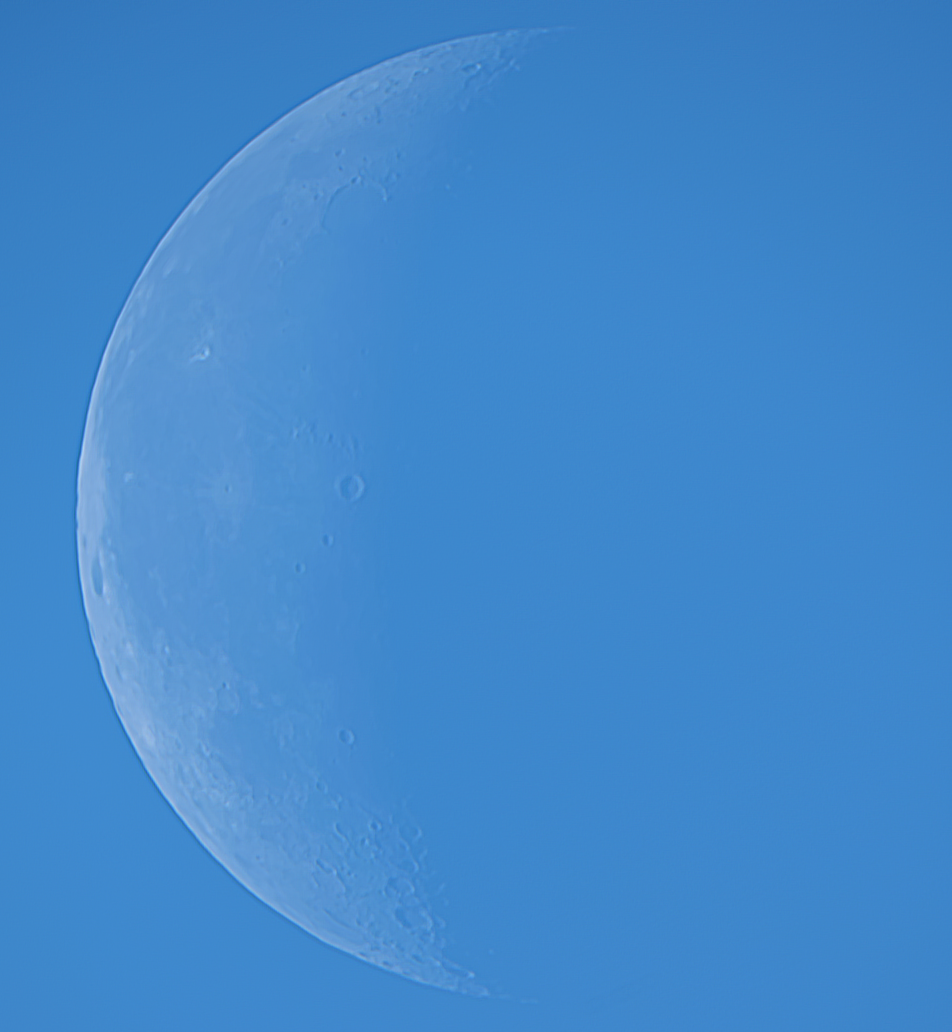 A video of the waning Moon (illumination 30%) in a very bright morning sky. Filmed at 05:20 Moscow time, 1.5 hours after sunrise. The video consists of 450 frames, with about 300 frames selected for stacking. The Moon's contrast is natural (without additional enhancement of details).