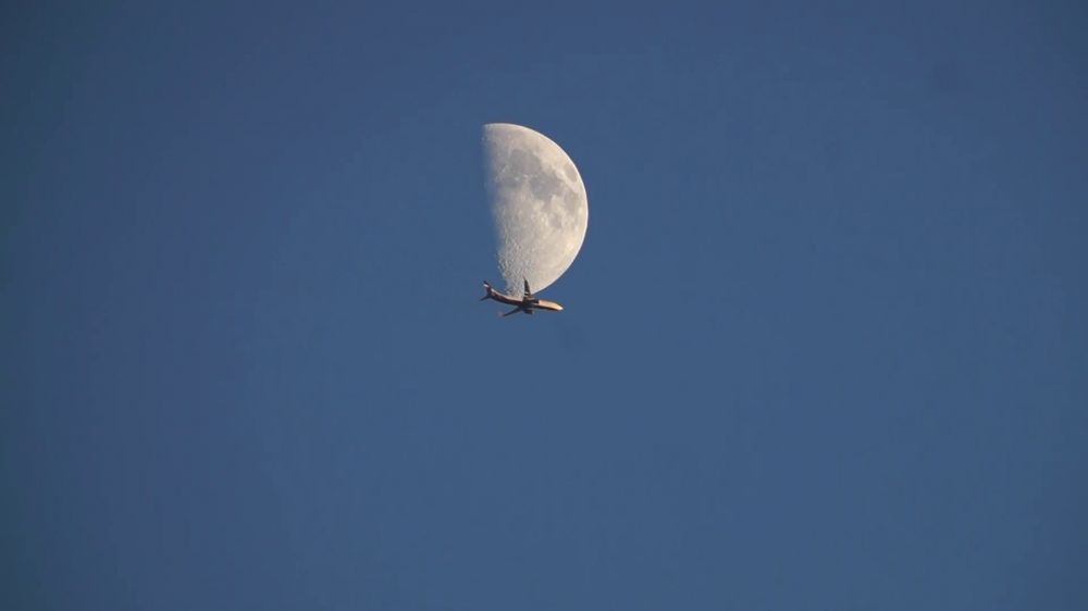 Airplane passing in front of the Moon. June 18, 2021