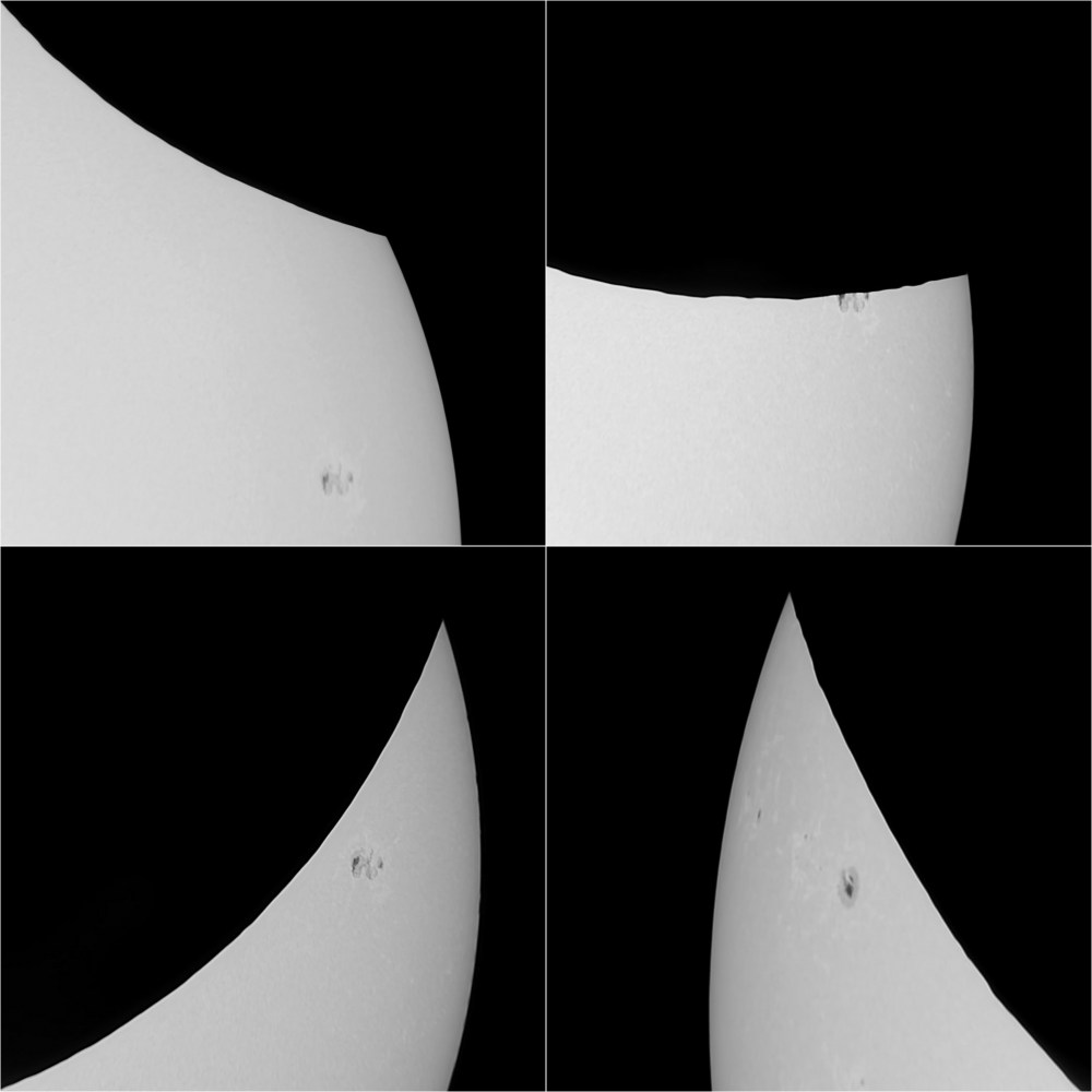 FRAGMENTS OF THE SUN DURING THE ECLIPSE. CLOSE-UP. Telescope/Lens: МАК 102/1300 mm Camera: Nikon D5300 Mount: Levenhuk Ra ATZ Software: PIPP, AutoStakkert, RegiStax, GIMP Accessories: ЛБХ3 Moskva Yugo-Zapadnaya Park Shkolnikov, Russia ISO 1270, exposures from 1/200 to 1/400 sec, stacks of 300-400 frames Original size: https://deepskyhosting.com/Y2crsFp Author: Pauli W.