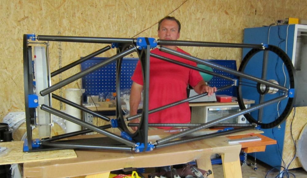 Photo of the first proper assembly of the telescope. The total weight of the tube is about 45 kilograms, used with a Skywatcher EQ8 mount.