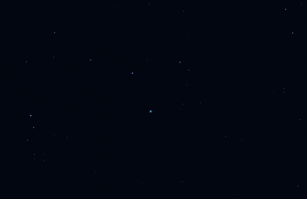 NGC 7662 is a planetary nebula in the constellation Andromeda. The distance to this nebula is not precisely known. According to the Skalnate Pleso Catalogue (1951), the distance to NGC 7662 is approximately 1,800 light-years, with a physical size of about 20,000 AU. A later study of bright planetary nebulae (C. R. O’Dell, 1963) derived a distance of 1,740 parsecs, or about 5,600 light-years, and increased the size estimate to 0.8 light-years, or nearly 50,000 AU. The nebula contains a faint central star of variable brightness, with a magnitude ranging from 12 to 16. This star is a blue dwarf with a continuous spectrum and an estimated temperature of about 75,000 K, placing the core of NGC 7662 among the hottest known stars.