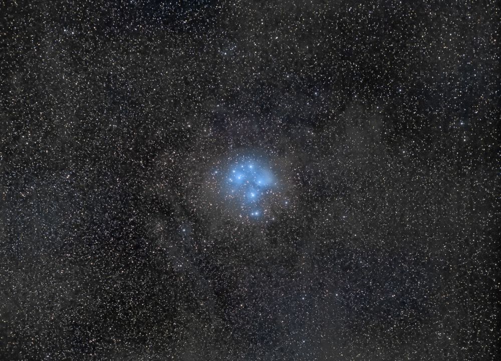 Camera, lens, filter: qhy168c, Sigma 105mm F1.4 Art, IDAS NB-1 filter. Mount: SkyWatcher AZ-GTi. 70x60s, gain 4, offset 30, T -15°C. Guiding: SVBONY SV165 30mm f/4 + qhy5III178m. Acquisition in SharpCap, processing in PixInsight. Location: a 600-square-meter plot near the village of Sokolovo, Pyatnitskoye Highway (red-yellow zone).
