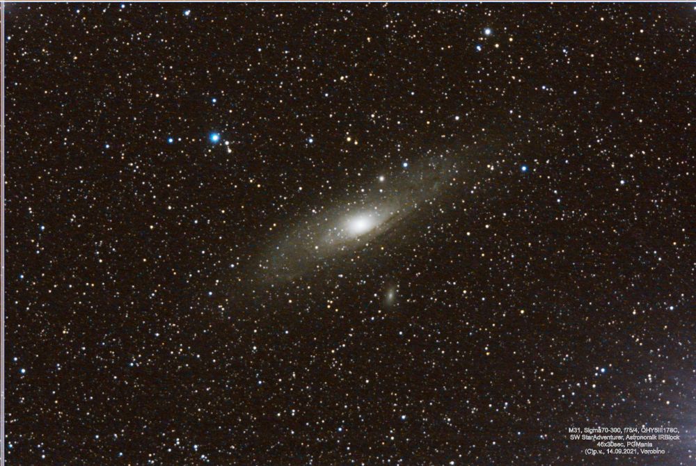 M31, Sigma70-300, f75/4, QHY5III178C, SW StarAdventurer, Astronomik IRBlock 46x30sec, PGMania (C)p.v., 14.09.2021, Vorobino
