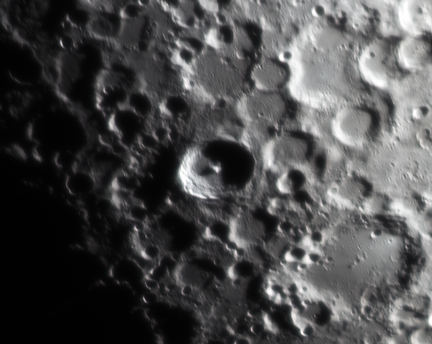 An attempt to photograph the Moon with a Newtonian telescope. The temperature dropped sharply, and the telescope didn't have time to cool down, which somewhat degraded the image quality...