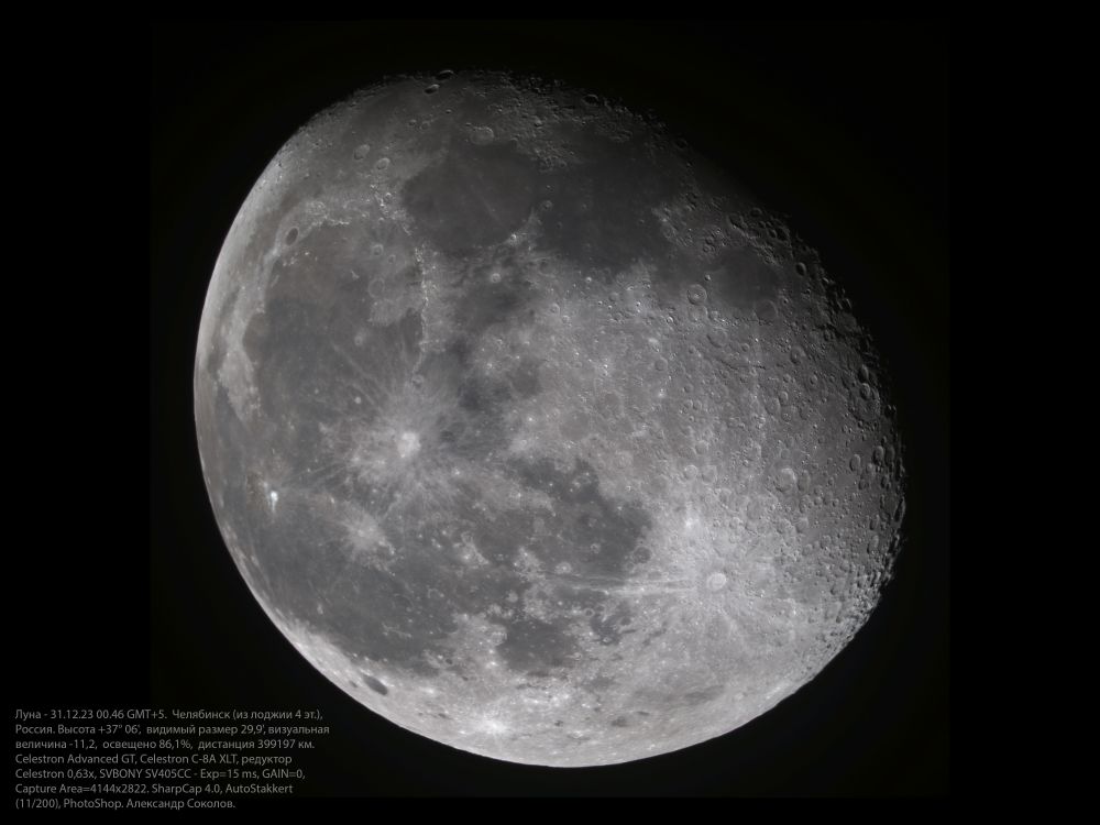The Moon on the night before New Year's Eve, from December 30 to 31, 2023. December 31, 2023, 00:46 GMT+5. Chelyabinsk.