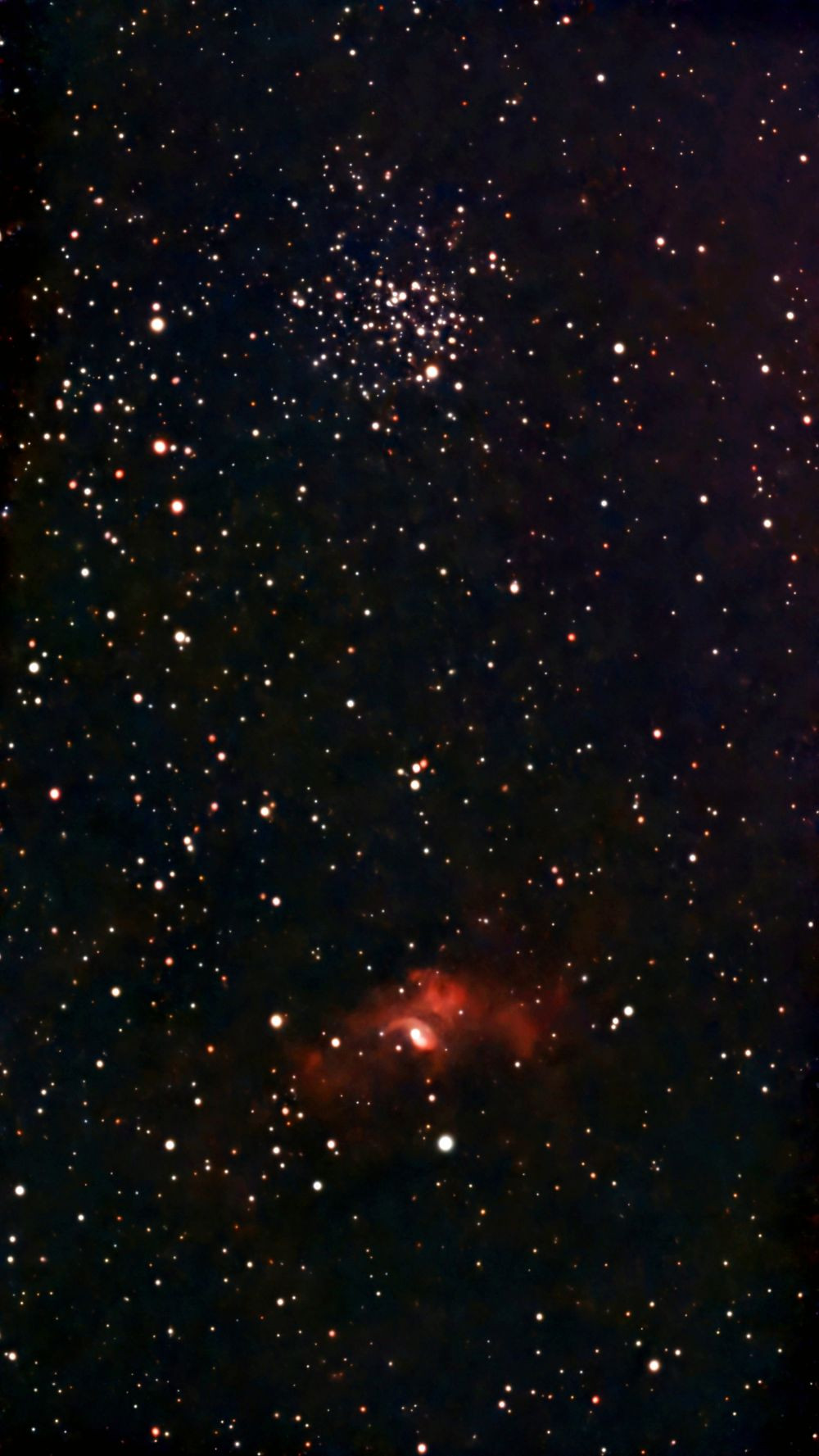 Open cluster M52 and NGC 7635, the Bubble Nebula