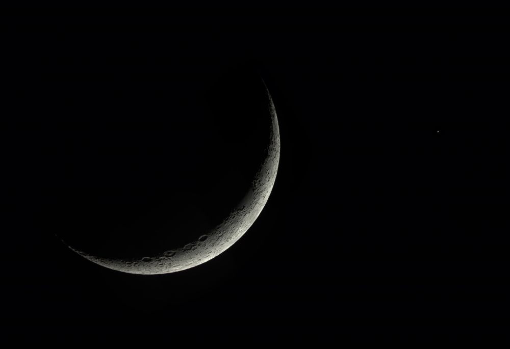 The Moon in four pieces, a 10k-frame video of Venus. The stacked images are overlaid on a composite photo taken with a 550D, with scales and proportions preserved. Altitude about 25 degrees.