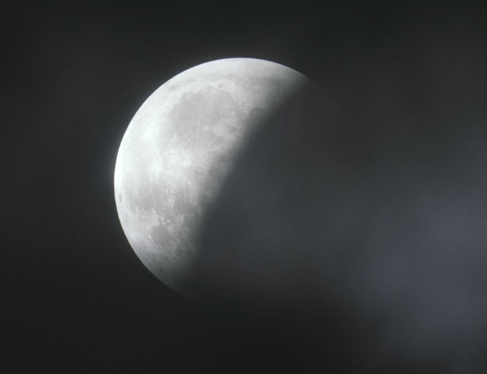 The total eclipse with a crimson hue remained behind the clouds; this is all I managed to capture in a brief clearing.