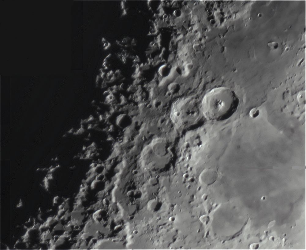 Lunar terminator in the region of craters Catharina, Cyrillus, and Theophilus from February 7, 2022.