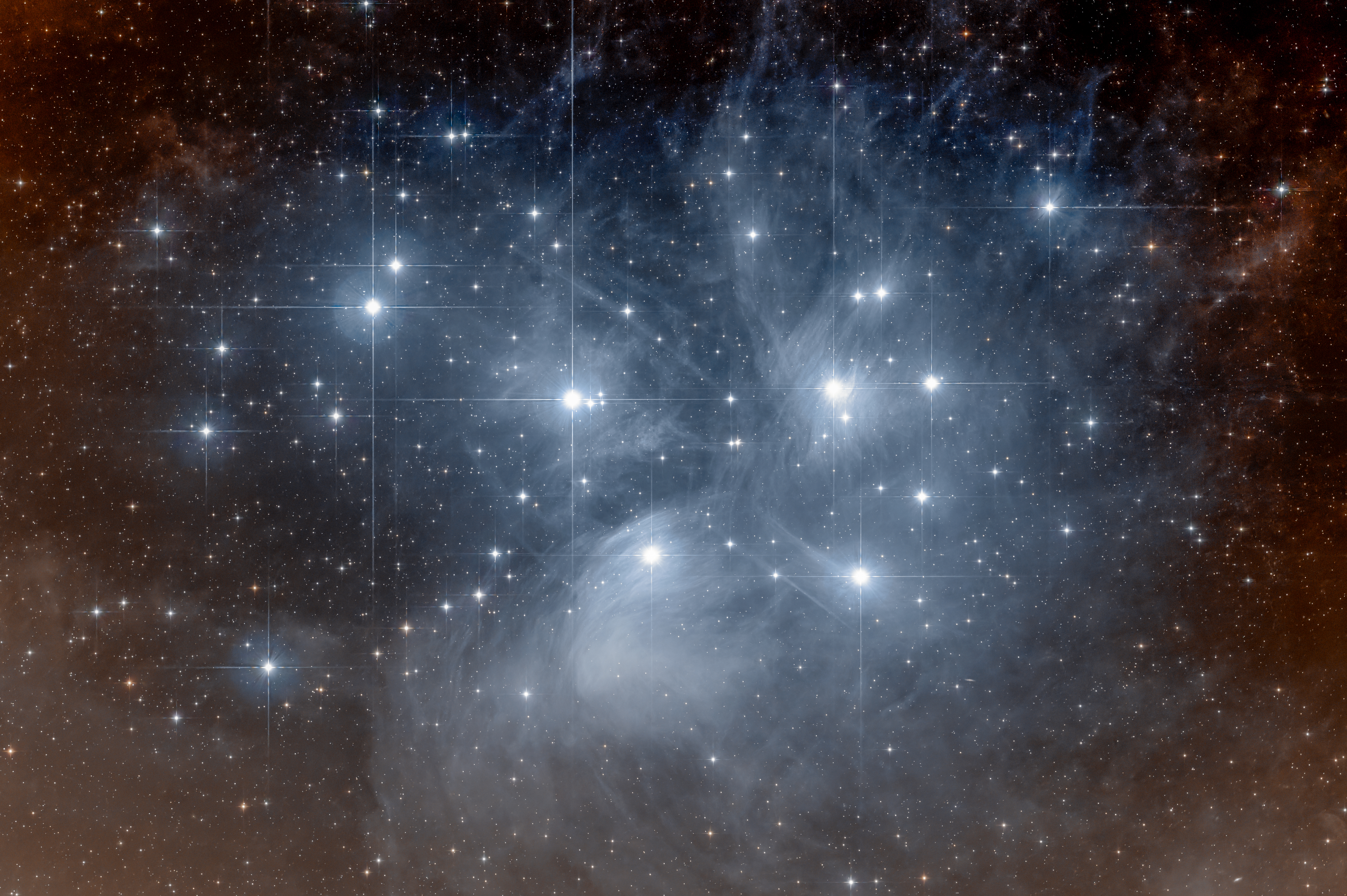 Опять по новому подошёл к периферии и цвету звёзд, по возможности убрал паразитные блики от растяжек. По моему Плеяды можно обрабатывать вечно, и стать настоящим субаристом.