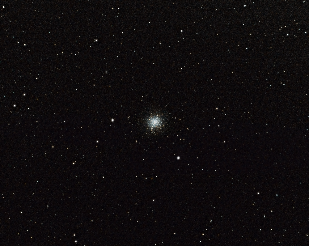 M13 (NGC 6205, GCL 45) from May 1, 2022. English name: "Great Cluster in Hercules". M13 is a globular star cluster located about 25,000 light-years from the Sun. Its diameter is roughly 150 light-years, although its densest core is confined to a diameter of about 100 light-years. The age of M13 is estimated to be 13.5 billion years.