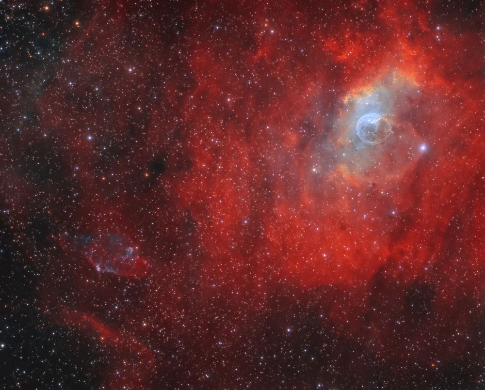 Planetary nebula KjPn 8 (PN G112.5-00.1, K3-89) and Bubble Nebula (NGC7635) in the constellation Cassiopeia.
