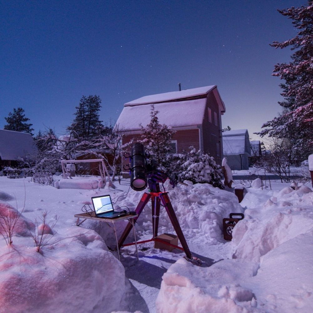 eq8, Celestron 8N (8",f/5), guide from finder and qhy5III-224, laptop and grill