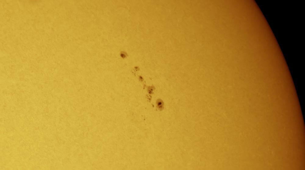 Sun (sunspot group 3639) 21.04.2024 10:35 (GMT+5). Loggia 4th floor. Celestron Advanced GT, Svbony SV503 80ED, 3x Barlow, film filter, Player One Photosphere 7.5 nm, Svbony SV305M Pro - exp 5 ms, gain 270. SharpCap, AutoStakkert - 100/2000 frames, Photoshop.