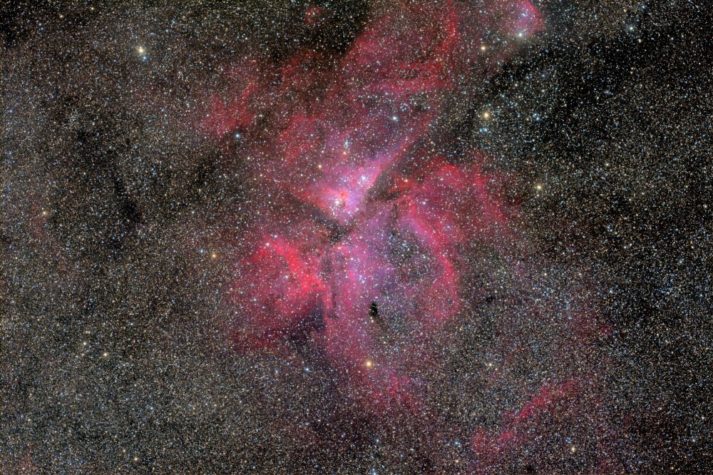Carina Nebula or Туманность Киля (NGC3372) is a large emission nebula in the southern constellation Carina. In addition to gas and dust, it contains several star clusters and associations.