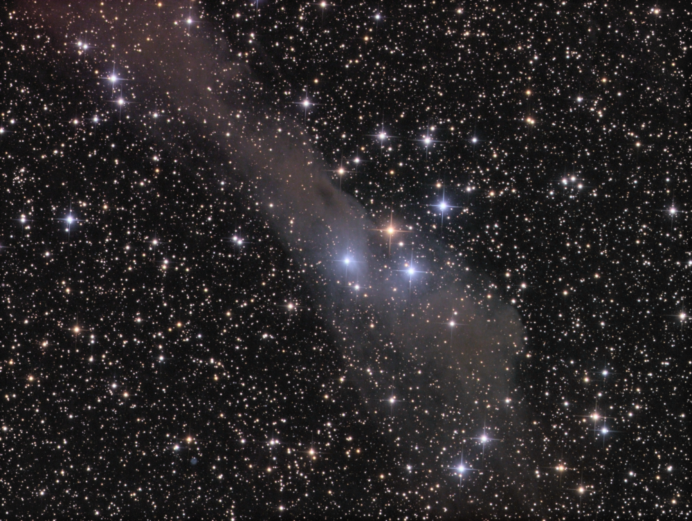 AV Hunter 1 (Aveni-Hunter 1) is an open cluster in the constellation Andromeda. Its distance from Earth is estimated to be 500 pc. As seen from Earth, this cluster is located above the illuminated portion of a long, dark cloud of gas and dust that stretches from northeast to southwest, known as LBN 534 (or GAL 110-13).