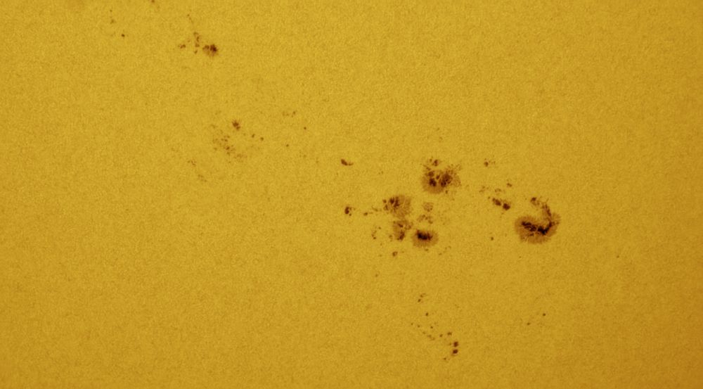 Sun (sunspot groups 3650, 3645, 3647, 3638) 21.04.2024 10:41 (GMT+5). Loggia 4th floor. Celestron Advanced GT, Svbony SV503 80ED, 3x Barlow, film filter, Player One Photosphere 7.5 nm, Svbony SV305M Pro - exp 5 ms, gain 270. SharpCap, AutoStakkert - 100/2000 frames, Photoshop.