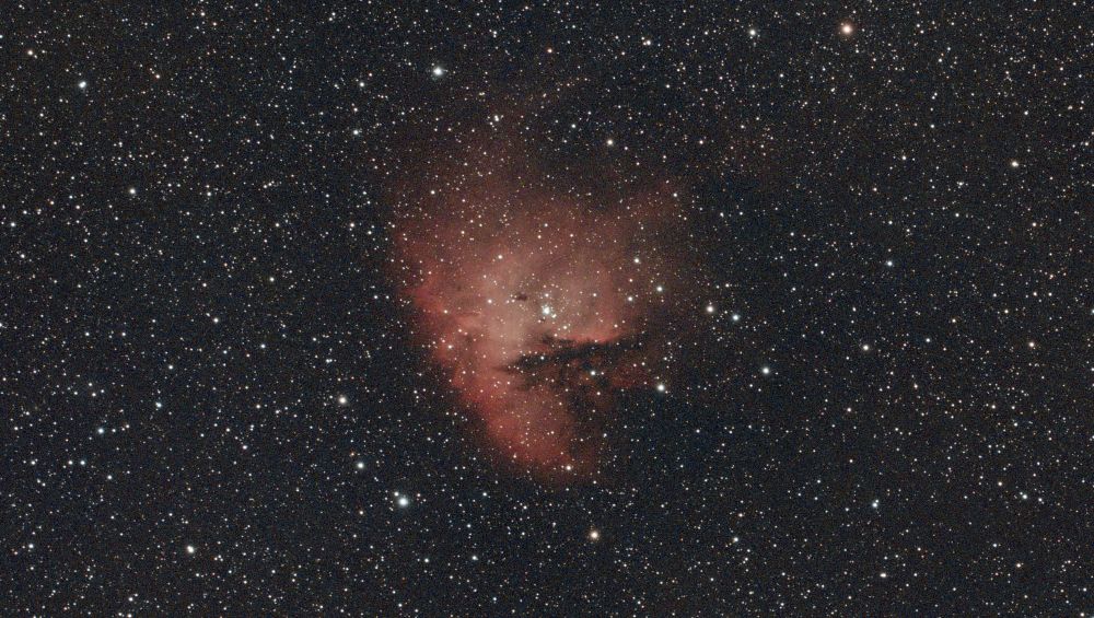 То же самое, что Туманность NGC281 Pacman #6, но с обработкой в Starnet. Удалил звезды и восстановил, приглушив их.