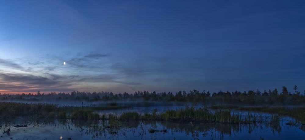 Planetary Parade Panorama. The Moon, Mars, and Jupiter.