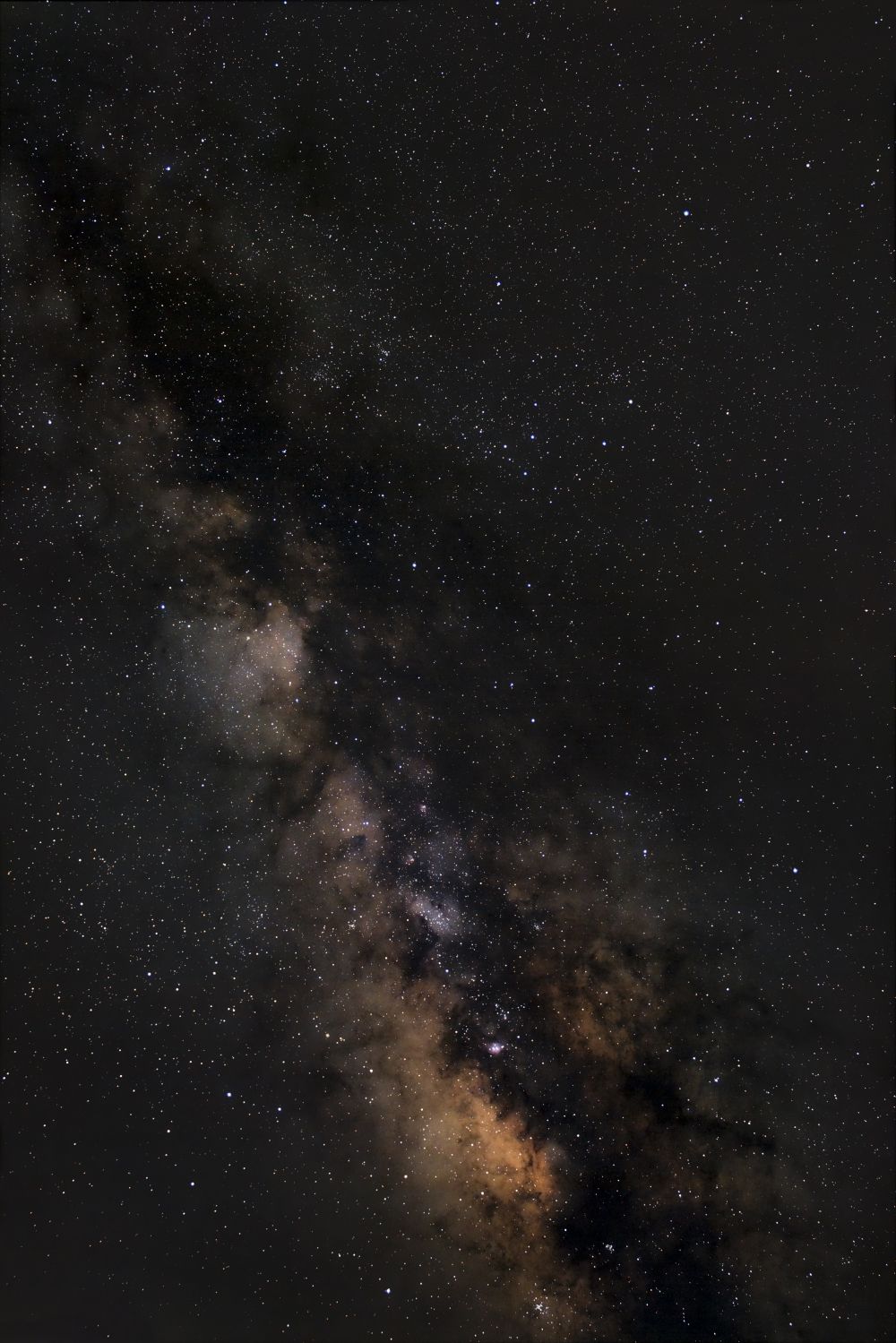 For the first time this year, I went to the observatory. I used an EQ5 mount as a tripod and a bag of water as a counterweight... I tried photographing the Milky Way for the first time, and I'm satisfied with the result. Aperture 3.5. No calibration frames.