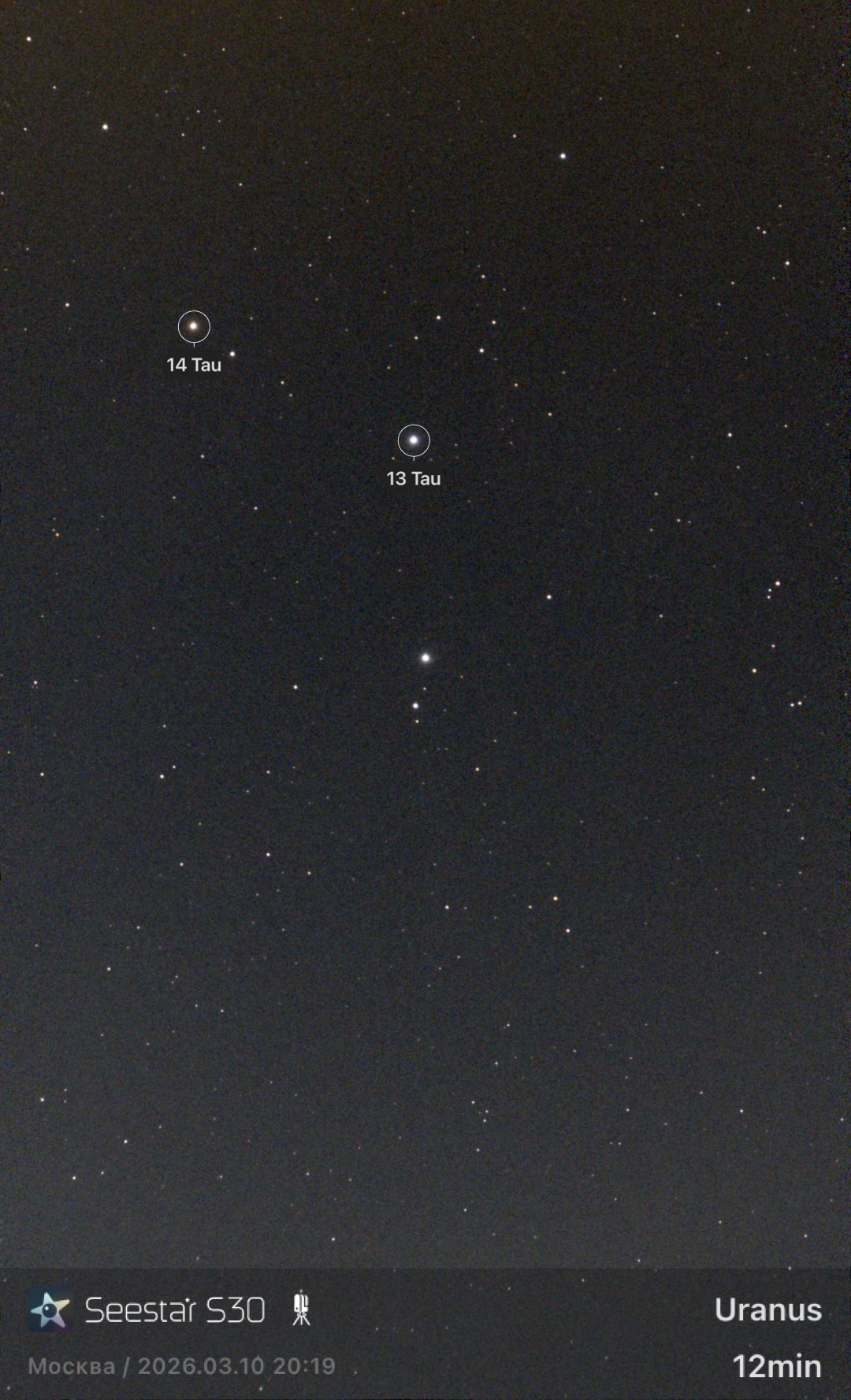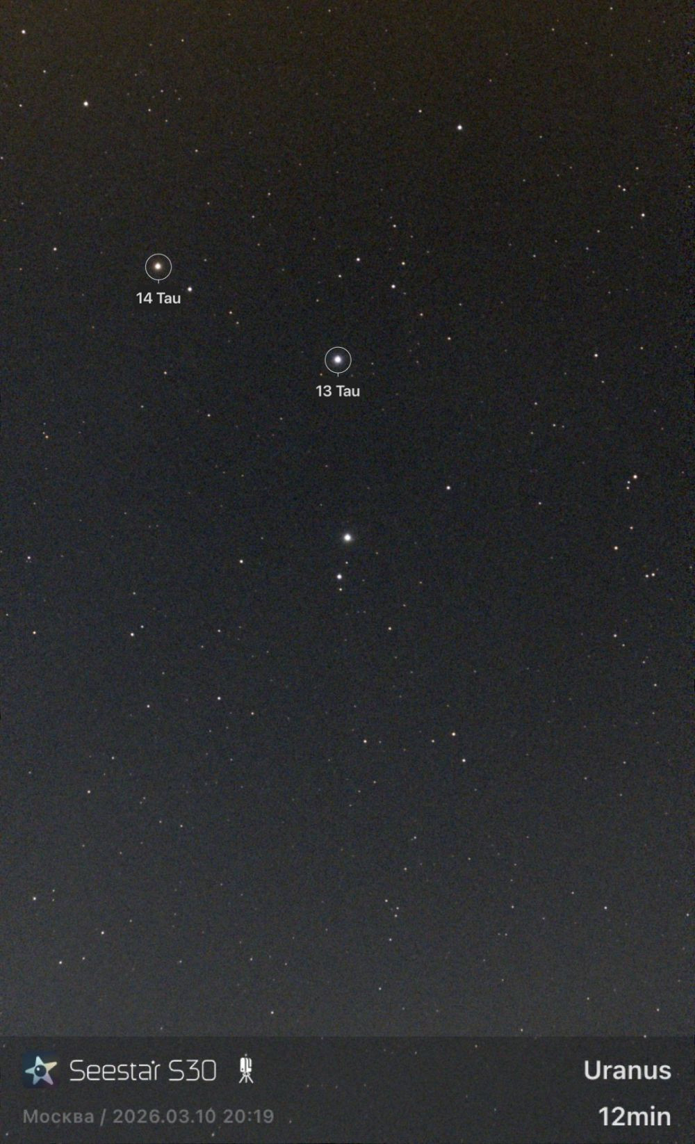 Uranus near Tau 13 and 14 (03.10.2026)
