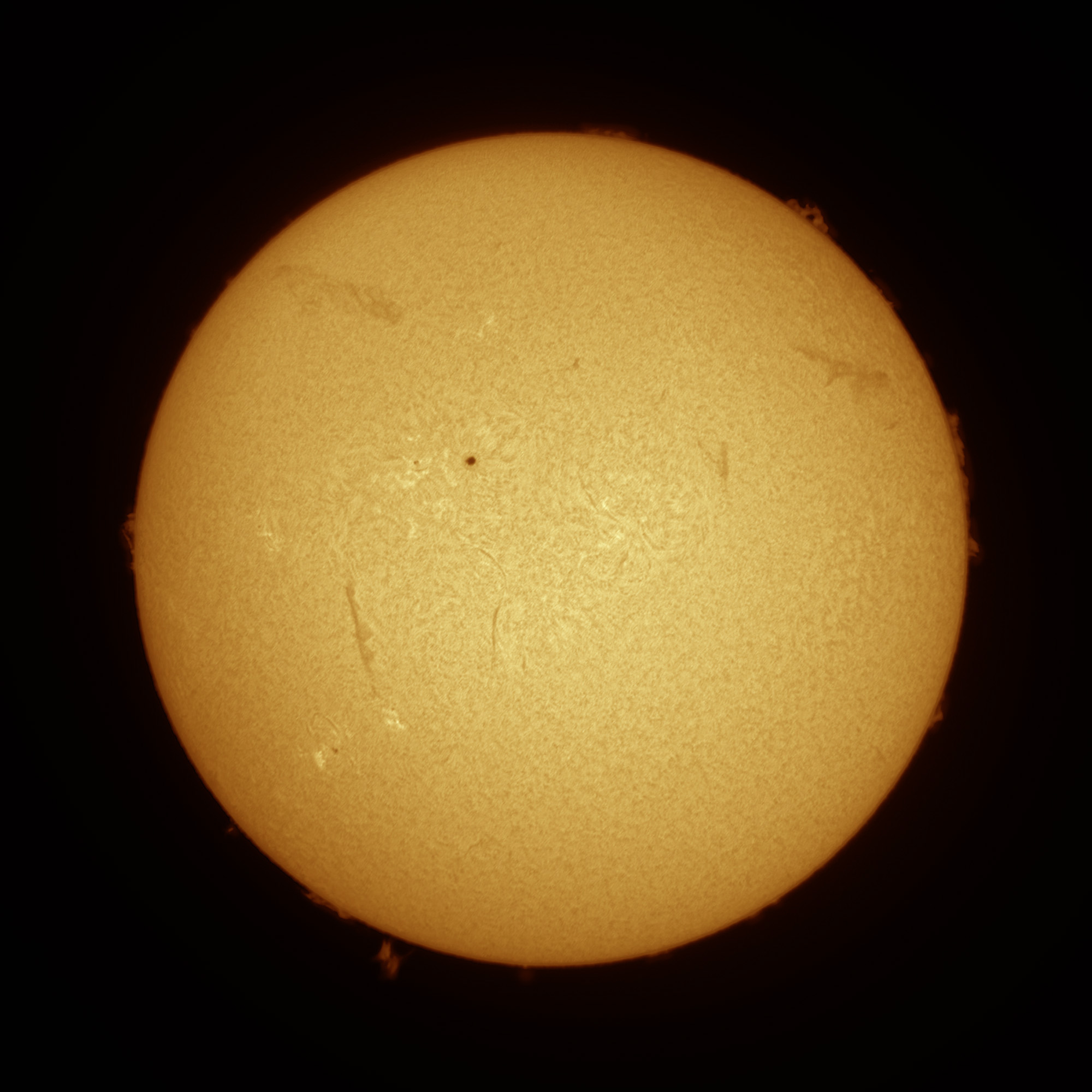 Original video (503 frames) by Yuri Yashchenko, Apatity - Lunt 50 mm (LS50THa/B400), ZWO ASI585MC Pro - exp=12.5 ms gain=71. AutoStakkert 100 out of 503 frames, Photoshop.