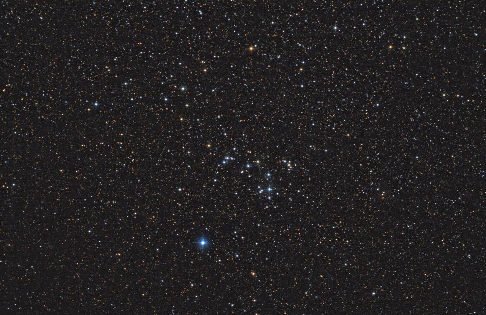 The open cluster NGC 6633 in the constellation Ophiuchus. It has the unique nickname "Tweedledee." It is known because the first human interstellar spacecraft, Voyager 1, is traveling in the direction of this cluster.