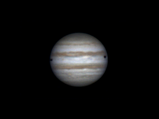 Shadows of Io and Callisto on Jupiter (26 feb 2015, 22:38)