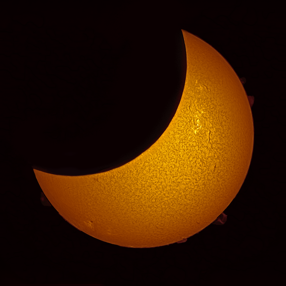 ECLIPSE OF OCTOBER 25, 2022 Telescope/Lens: Coronado PST H-alpha 40mm Camera: ZWO ASI178MC Mount: Фотоштатив Software: SharpCap, AutoStakkert. RegiStax. Adobe Photoshop. Lesnoy, Russia Exposure: 100 x 8" ISO/Gain: 0 Original size: https://deepskyhosting.com/sOYQ8XU Author: Anna Shekurova