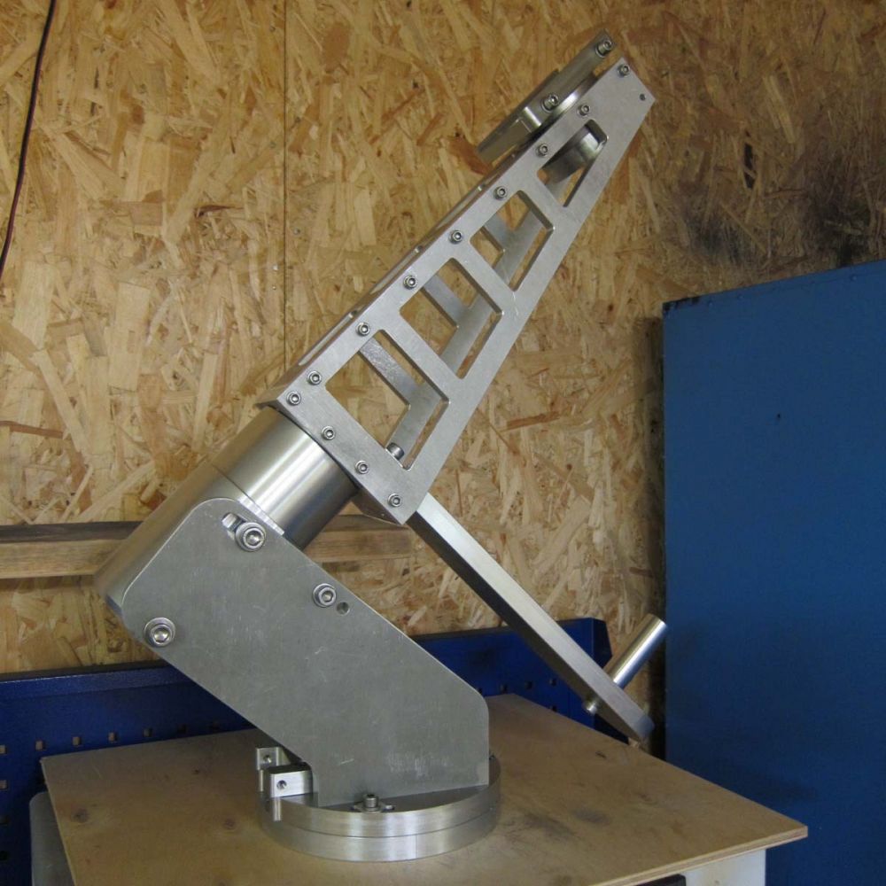 It looks unusual but is convenient due to its large clearance from the lift to the intersection point of the axes, eliminating the need for extra adjustments. Once equipped with a drive and tested, it may be sent to the Caucasus for use with an RASA 11 under high wind load conditions.