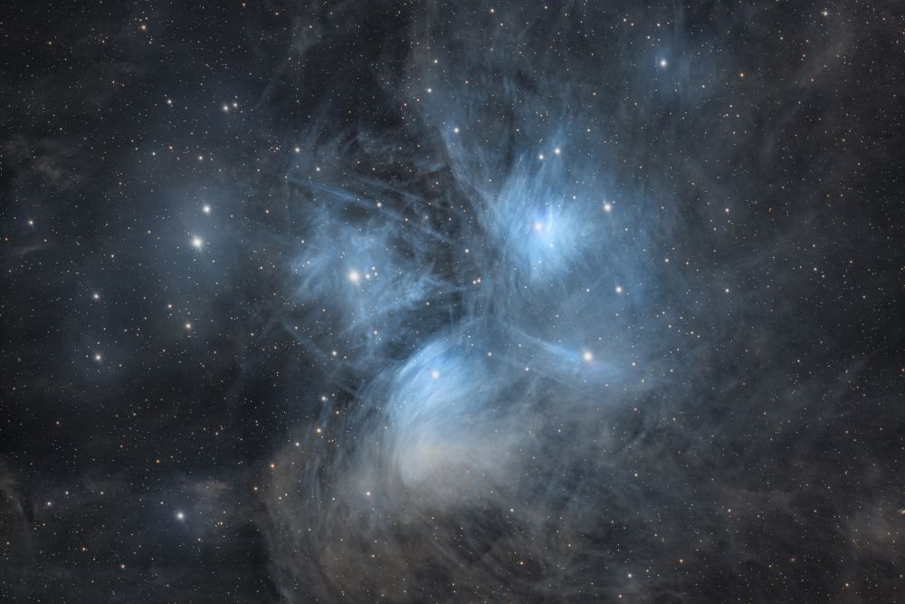 M45 Telescope/Lens: c11 Camera: ZWO 2600mc pro Mount: EQ6 Pro Accessories: Starizona Hyperstar Ekaterinburg, Russia Light Pollution: Yellow zone Exposure: 517 x 120" ISO/Gain: 0 Post-processing KonFuz Original size: https://deepskyhosting.com/sk7TP46 Author: DeeMooN