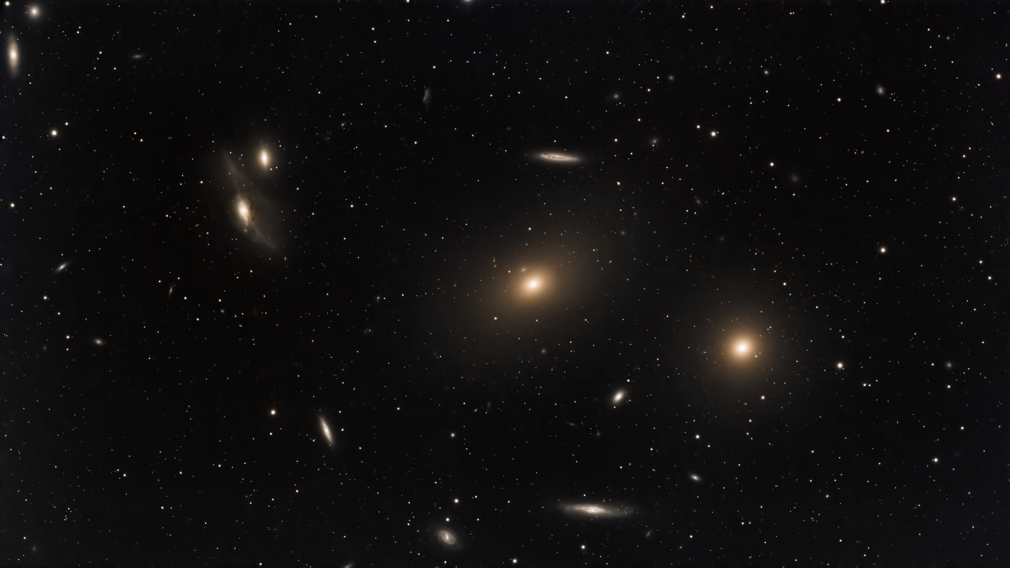 Markarian's Chain is a group of galaxies that forms part of the Virgo Cluster. It is named after the Soviet astrophysicist V. E. Markarian, who discovered the common motion of these galaxies in the early 1960s. Unfortunately, the entire chain doesn't fit in the frame—only a portion is captured here.