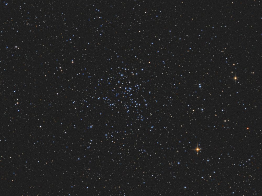 A large but not very bright open cluster NGC1528 in the constellation Perseus. North is to the left.