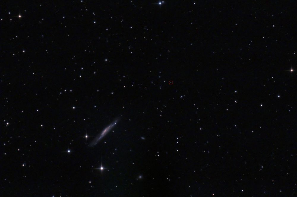 The quasar is located 9 billion light-years away from us. Additionally, gravitational lensing is visible, splitting the quasar's light into two beams, which reach us with a difference of over 400 days.