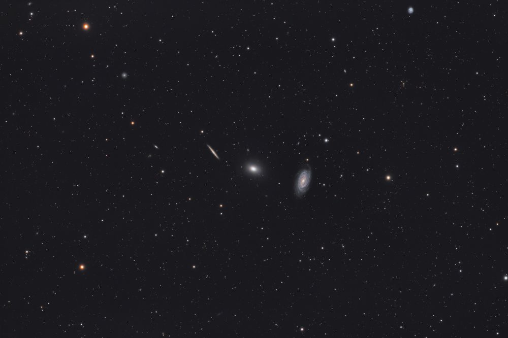 All three galaxies are located at a distance of approximately 100–140 million light-years from Earth. In the lower right corner, another galaxy can be seen - NGC 5989. This is a poorly studied late-type spiral galaxy, judging by its spectrum - without a bright active nucleus and without noticeable signs of recent powerful collisions.