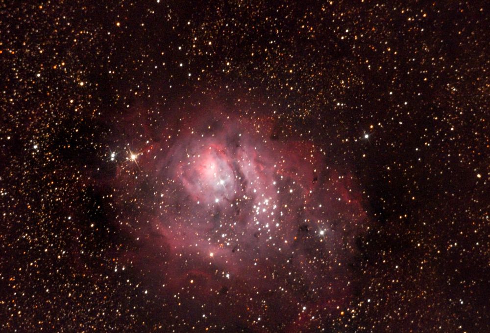 The only nebula from the Sagittarius Trio that I hadn't re-shot. Guiding works poorly at such a low altitude, trees get in the way... In short, it was captured in spite of, not because of, the conditions. Because I love this trio of nebulae and the fourth one at the top.