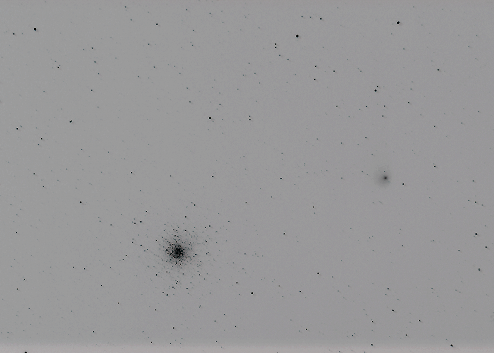 Comet C/2017 K2 (PanSTARRS) near the M10 cluster. Photo in inverted colors.